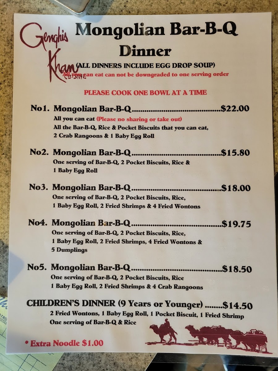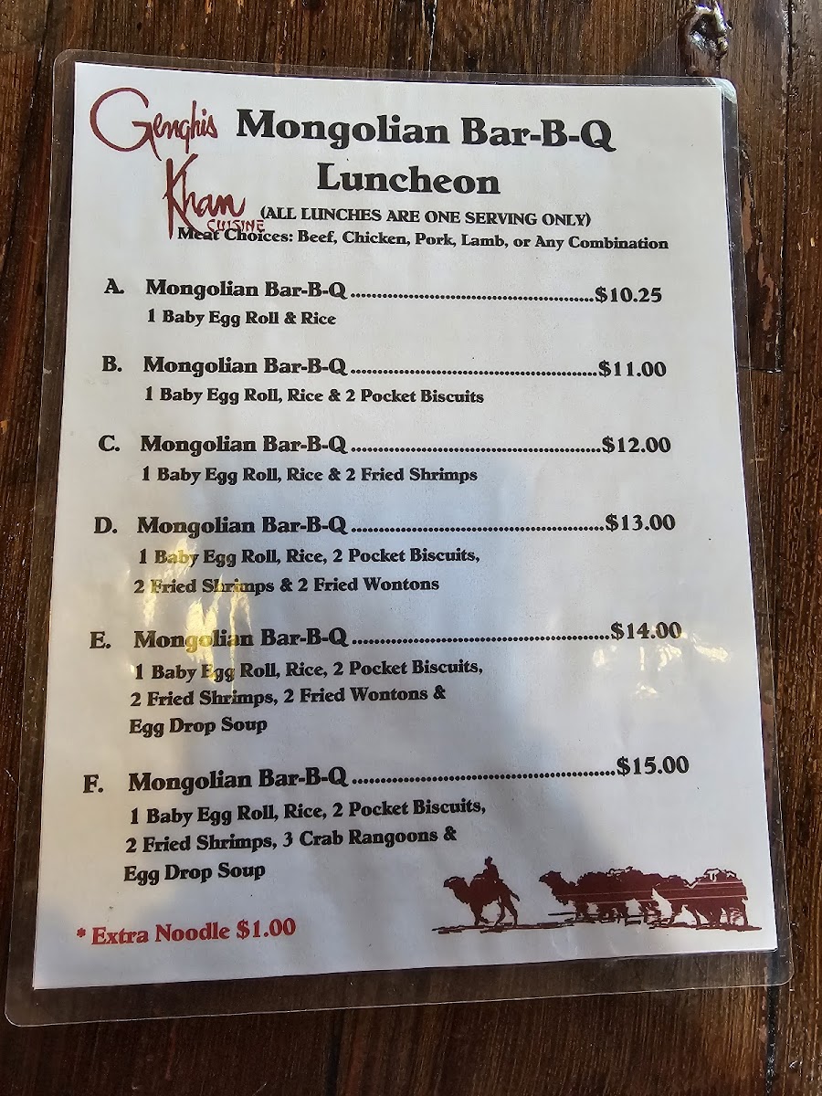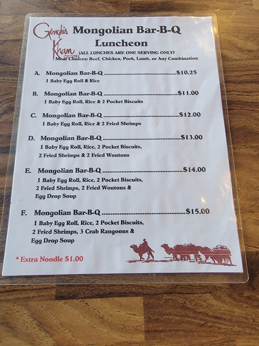 At Genghis Khan Mongolian BBQ Menu, located at 7132-A Garden Grove Blvd in Westminster, CA, you’re in for a treat that’s as customizable as it is delicious. The moment you step in, you’re greeted with a unique dining experience where you can hand-pick your favorite fresh ingredients - from tender meats and crisp veggies to flavorful sauces and spices. After selecting your ingredients, the magic happens on the grill as your meal is cooked right in front of you, giving you the chance to enjoy food that's tailored just to your taste.